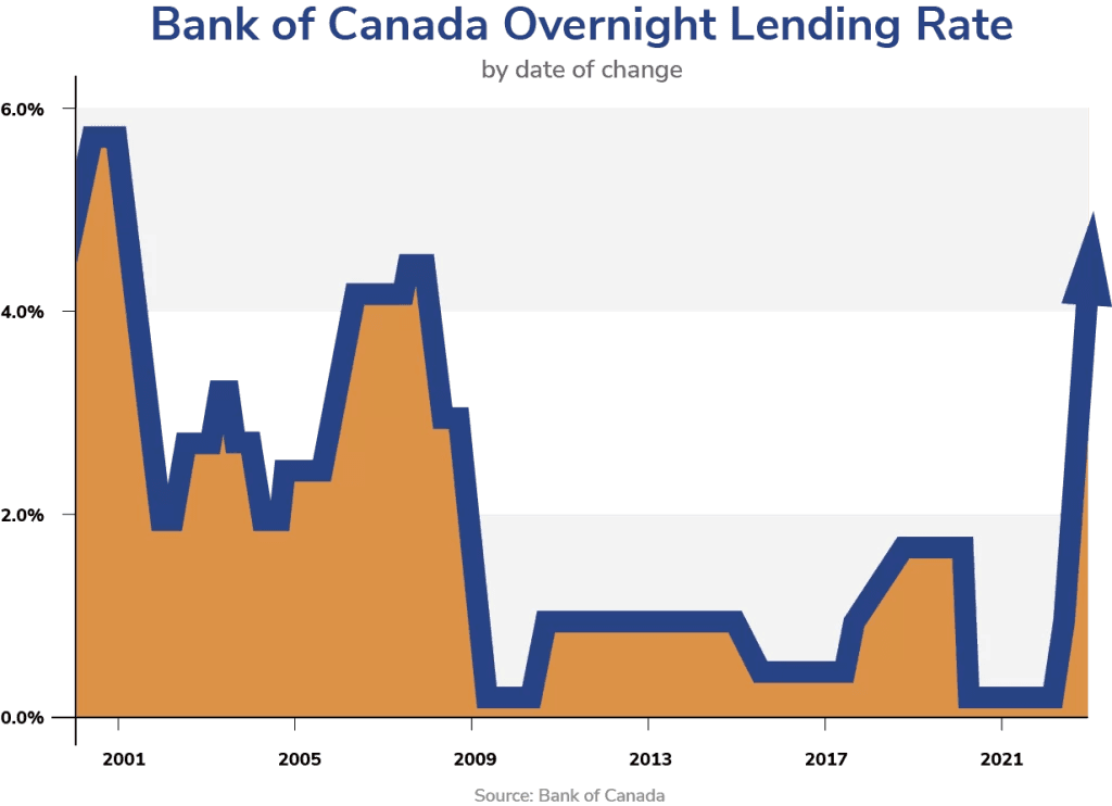 The Bank of Canada recently raised its interest rate from 4.25% to 4.5%. This is the fifth consecutive rate hike and has big implications for Canadians who have variable-rate mortgages.